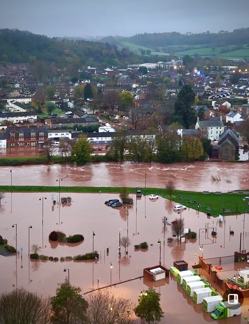 وأظهرت لقطات جوية فيضانات واسعة النطاق في مونماوث، حيث غمرت المياه وسط المدينة والمناطق السكنية بعد أن فاض نهر قريب عن ضفافه خلال الليل.