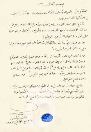 وقال الصدر في بيان كتب بخط يده، إنه "لتفويت الفرصة على الفاسدين ولدرء الفتنة التي يسعى لها الفاسدون، تمنع كل المظاهر المسلحة حتى على سرايا السلام إلا في أماكن الاحتكاك مع الإرهاب وبطريقة أولى منعه على أفراد (التيار الوطني الشيعي) بل ومنع التجمعات والتظاهرات وحتى السلمي منها".