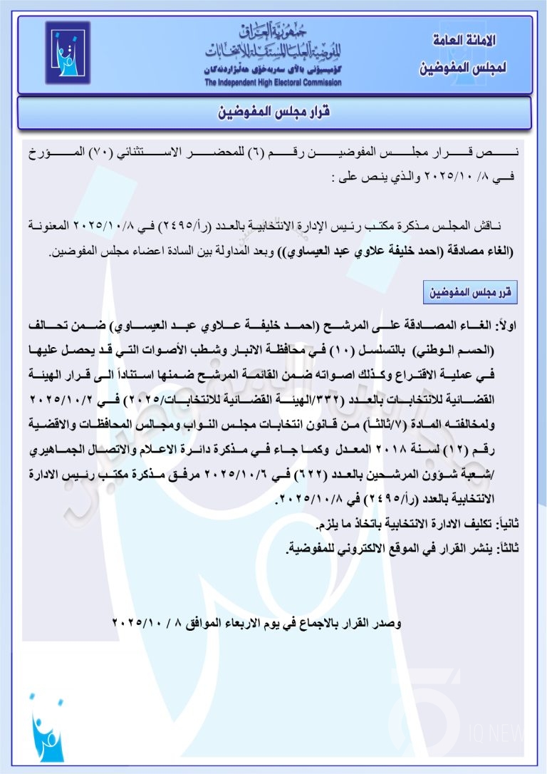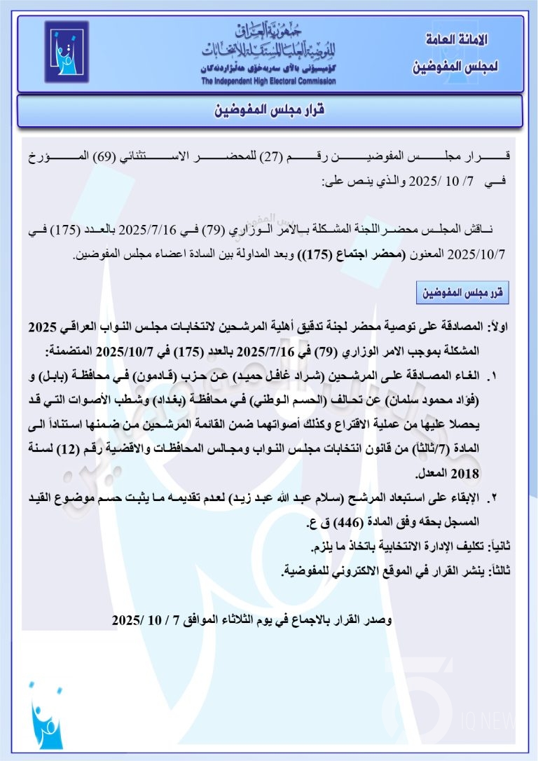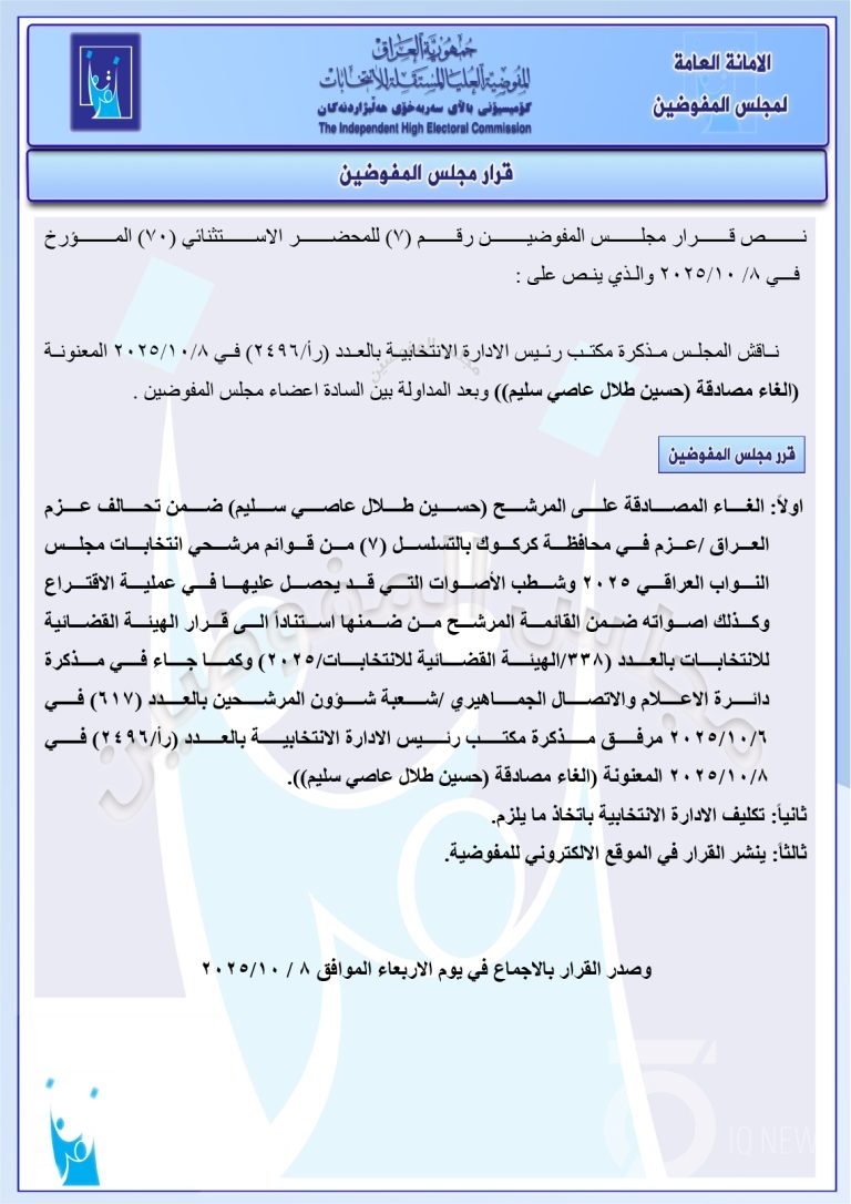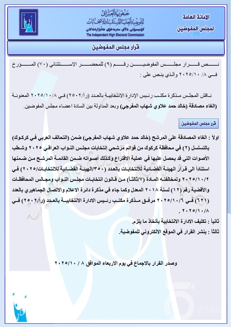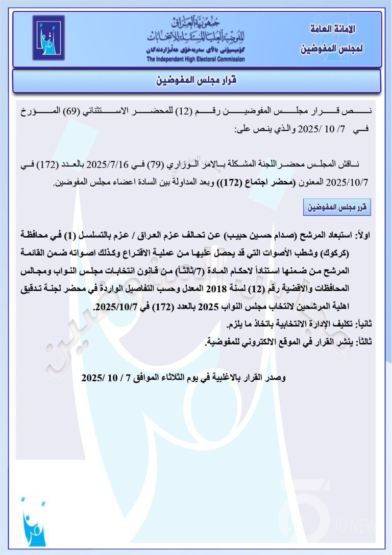 قررت مفوضية الانتخابات، استبعاد عدد من مرشحي تحالفات عزم وحسم والتحالف العربي في كركوك من السباق الانتخابي.