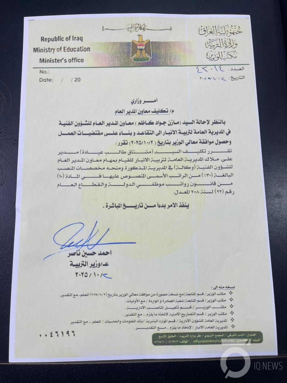 أفاد مصدر مطلع، بتكليف مشتاق طالب عيادة، وهو مرشح تحالف العزم في الانتخابات المقبلة وشرطي سابق، بمنصب معاون فني لتربية الأنبار، رغم عدم امتلاكه أي مؤهلات أو خبرة فنية أو إدارية في المجال التربوي.