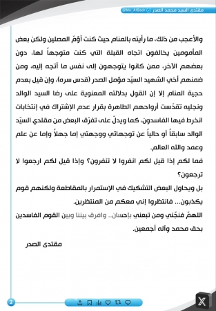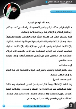 بغداد - IQ روى زعيم التيار الوطني الشيعي، مقتدى الصدر، رؤيته في المنام، مؤكدًا في الوقت نفسه رفضه المشاركة في الانتخابات