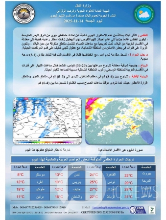 الأنواء الجوية تتوقع تساقطاً للأمطار وانخفاضاً في درجات الحرارة