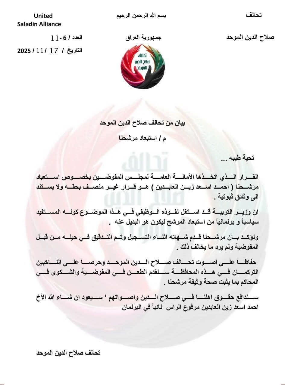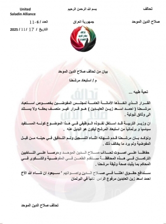 فضيحة جديدة لوزير التربية.. النامس يستغل منصبه ويلغي شهادة مرشح تحالف صلاح الدين الموحد بعد خسارته الانتخابات