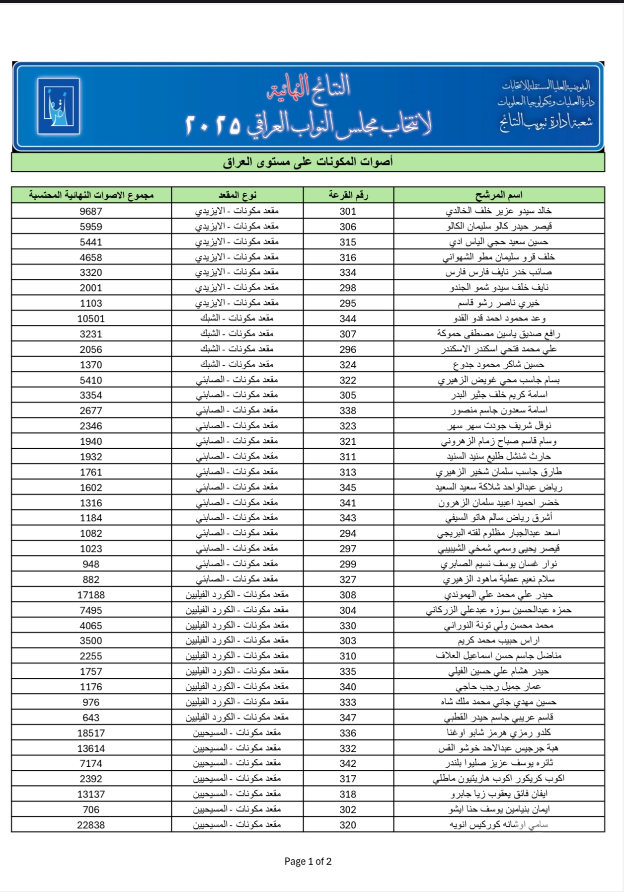 تنشر (IQ) أصوات الكوتا في الانتخابات البرلمانية.