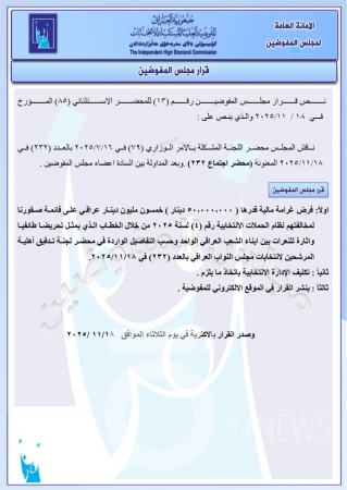 فرضت مفوضية الانتخابات، غرامة مقدارها 50 مليون دينار على تحالف "صقورنا" لمخالفته ضوابط الدعاية الانتخابية.