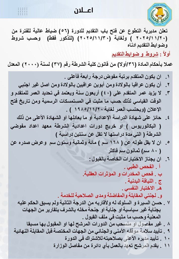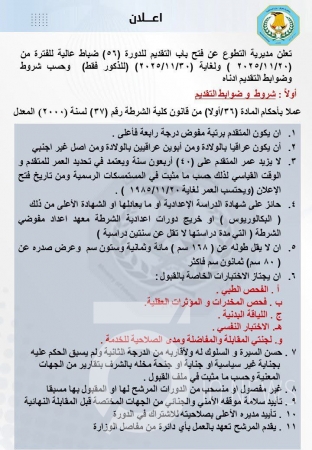 أعلنت وزارة الداخلية، ضوابط وشروط القبول في الدورة (56) ضباط عالية.