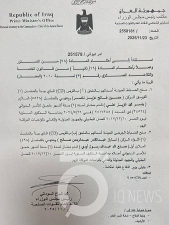 جاء ذلك بحسب وثيقة موقعة من السوداني وأدناه نصها: