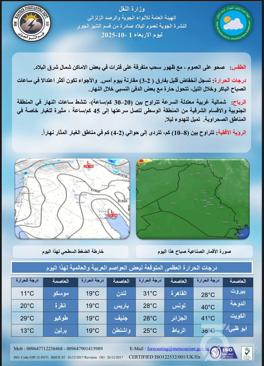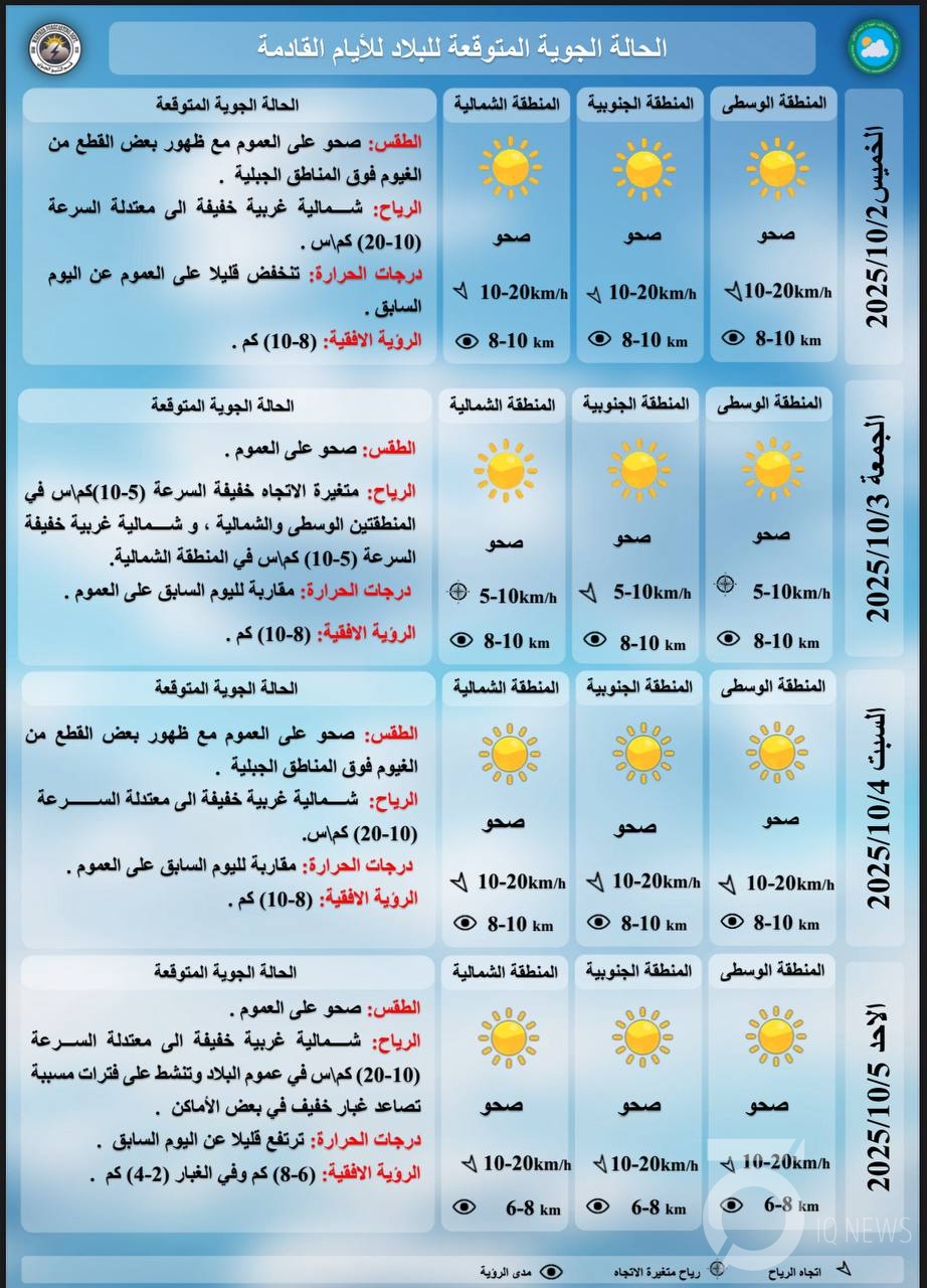 هيئة الأنواء الجوية: العاصفة الترابية تنحسر بدءاً من مساء اليوم