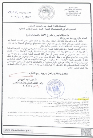 وجه وزير التعليم العالي والبحث العلمي نعيم العبودي، اليوم الأربعاء، باستيفاء رسوم المنصة الرقمية البالغة 66 ألف دينار لمرة واحدة فقط.