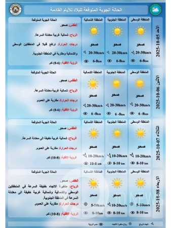 طقس البلاد: عواصف ترابية وانخفاض بدرجات الحرارة في الأيام المقبلة