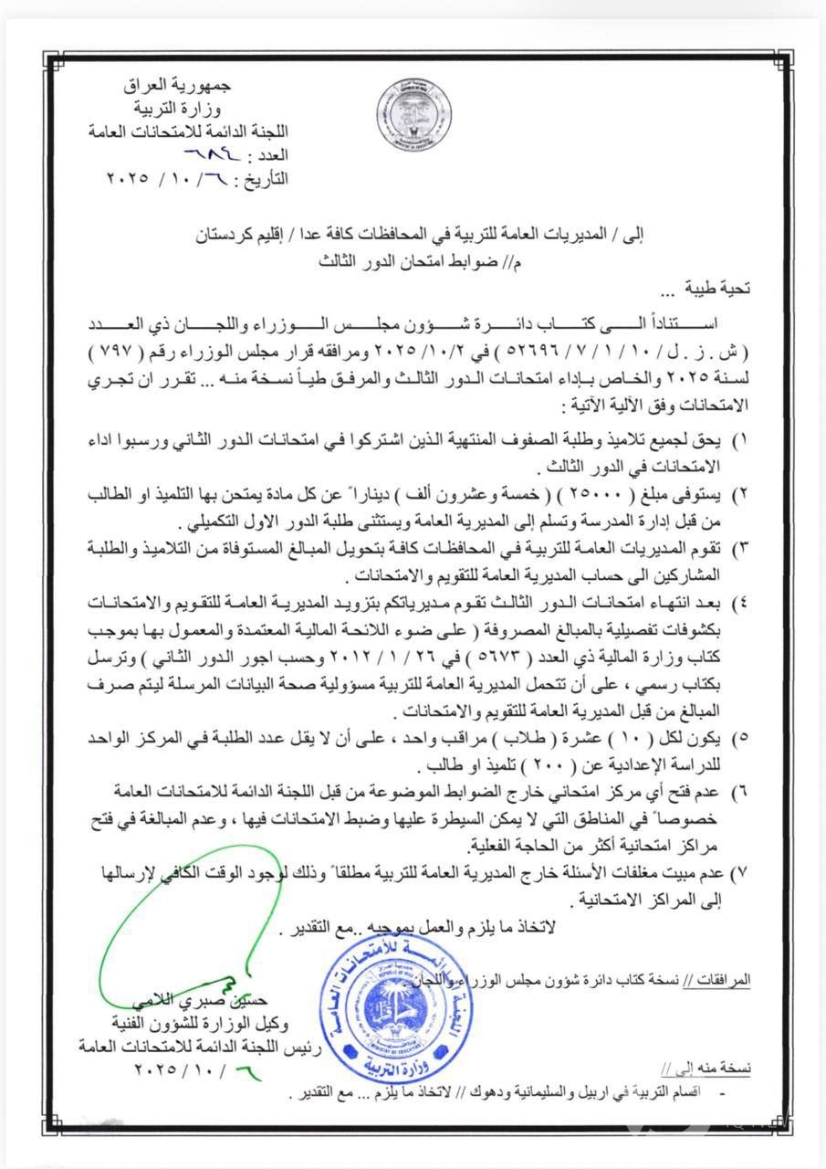 شمول الراسبين للمراحل غير المنتهية بأداء امتحانات الدور الثاني
