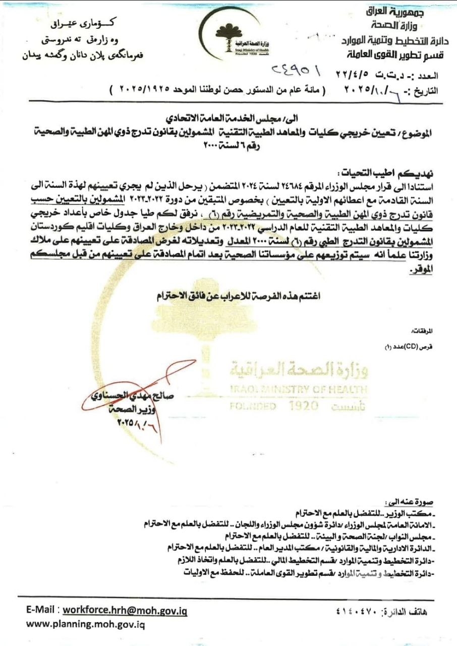 الصحة ترحل تعيين الأعداد المتبقية من خريجي المهن الطبية 2022-2023 للسنة المقبلة