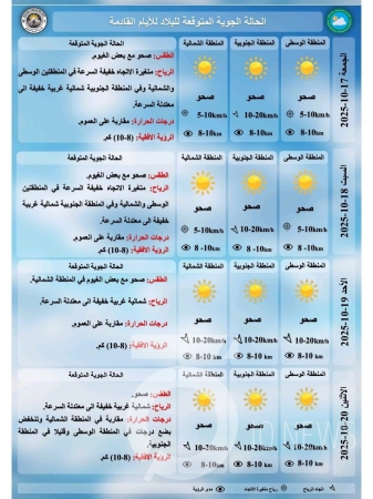 طقس البلاد: عواصف ترابية وانخفاض بدرجات الحرارة في الأيام المقبلة