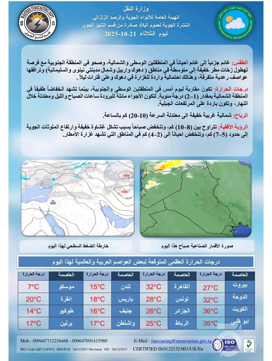 تبدأ ليلة اليوم.. أمطار واجواء غير مستقر ة وثلوج في العراق