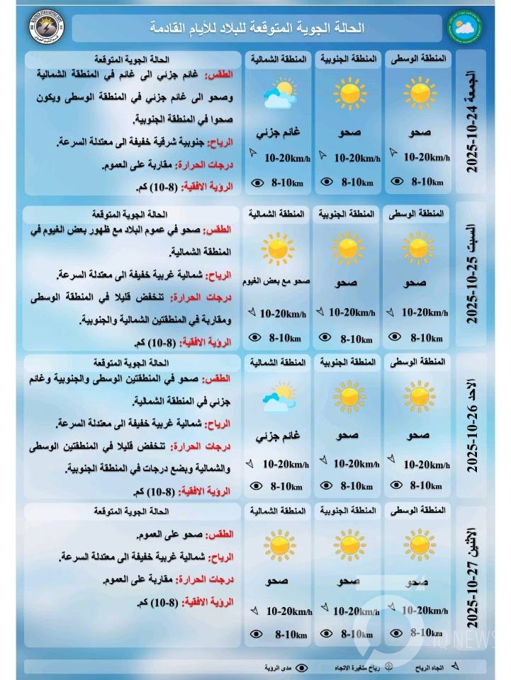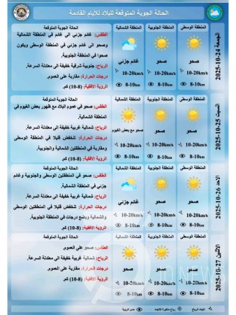 الأنواء الجوية تكشف حالة الطقس خلال الأيام المقبلة