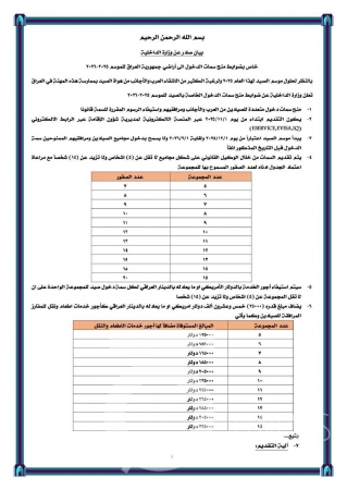 أعلنت وزارة الداخلية، اليوم الأربعاء، ضوابط منح سمات الدخول للأراضي العراقية لموسم الصيد 2025- 2026.