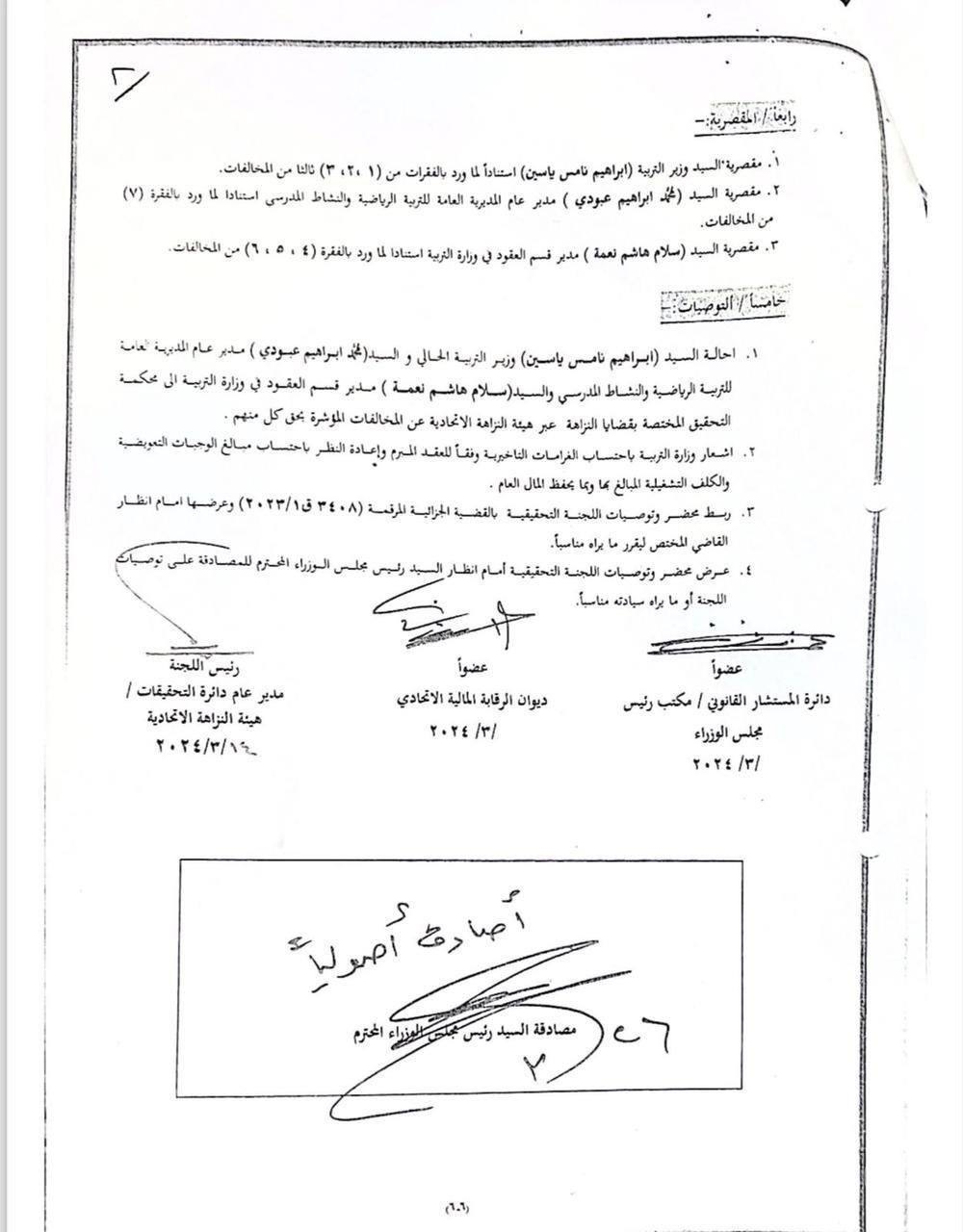 بغداد - IQ بالوثيقة.. إحالة وزير التربية إبراهيم نامس الجبوري إلى القضاء لتورطه بهدر 21 مليار دينار من خلال أحد عقود الوزارة.