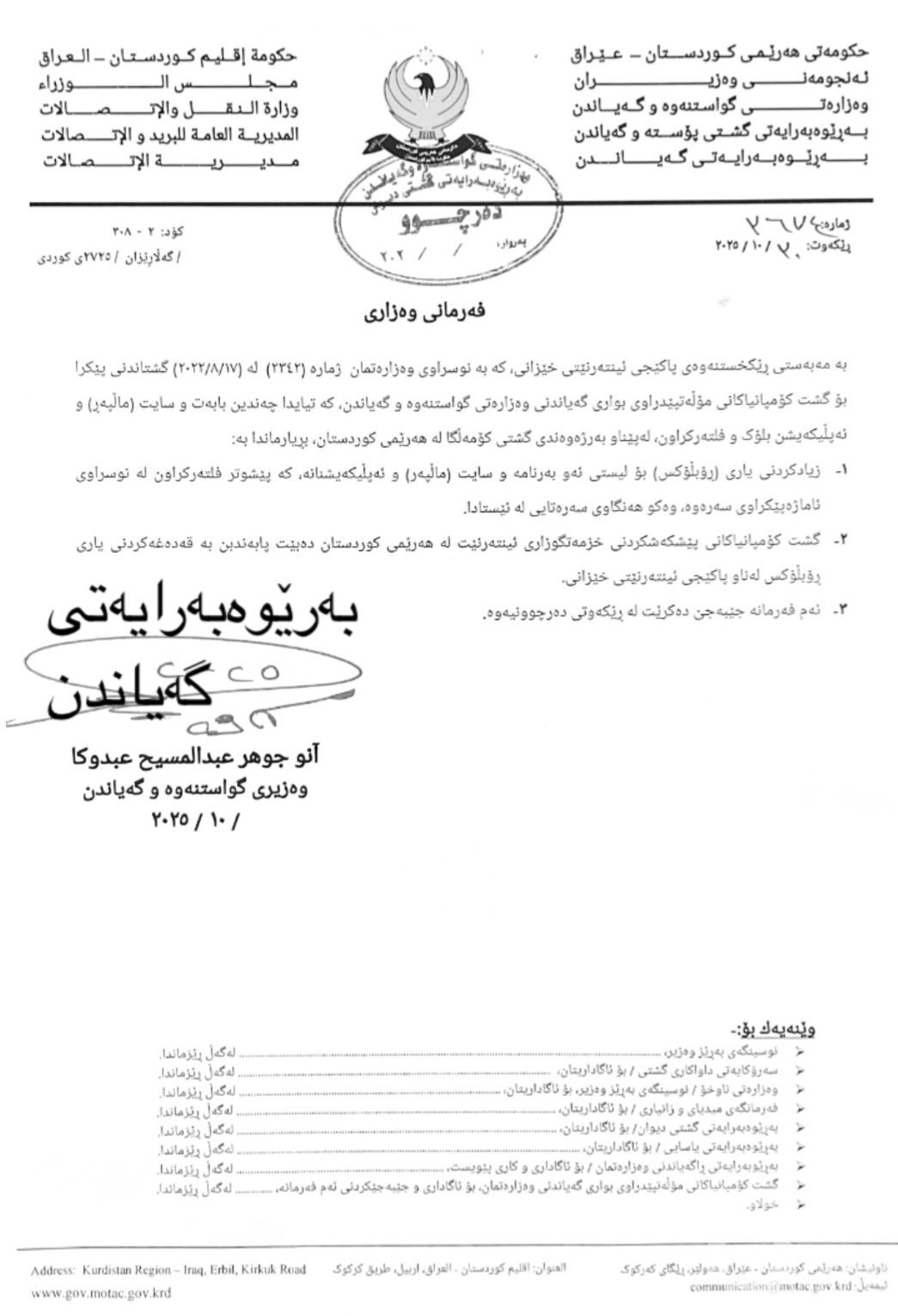 أعلنت وزارة النقل والاتصالات في حكومة إقليم كردستان، اليوم السبت، حظر لعبة روبلكس ضمن الباقة العائلية للإنترنت.