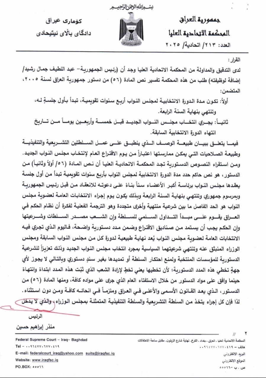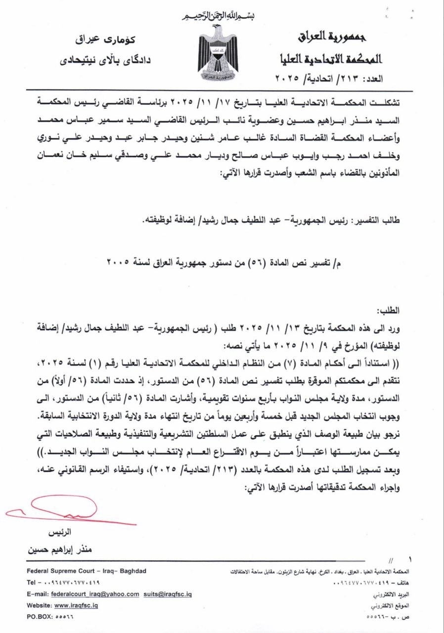 رئيس المحكمة الاتحادية: المشكلة التي يمّر بها العراق نتيجة سوء التعامل مع الدستور