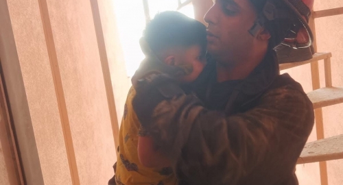 الدفاع المدني يخمد حريقاً اندلع داخل شقة بمجمع الزهور وينقذ عدة عائلات